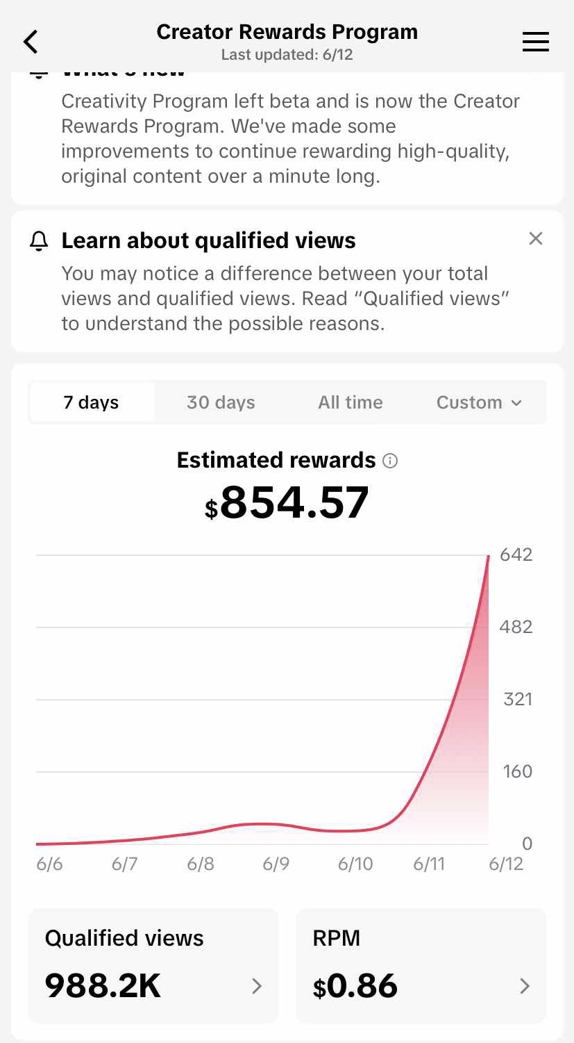 I post one video a day and earn $2K/month consistently from TikTok Creator Rewards alone.